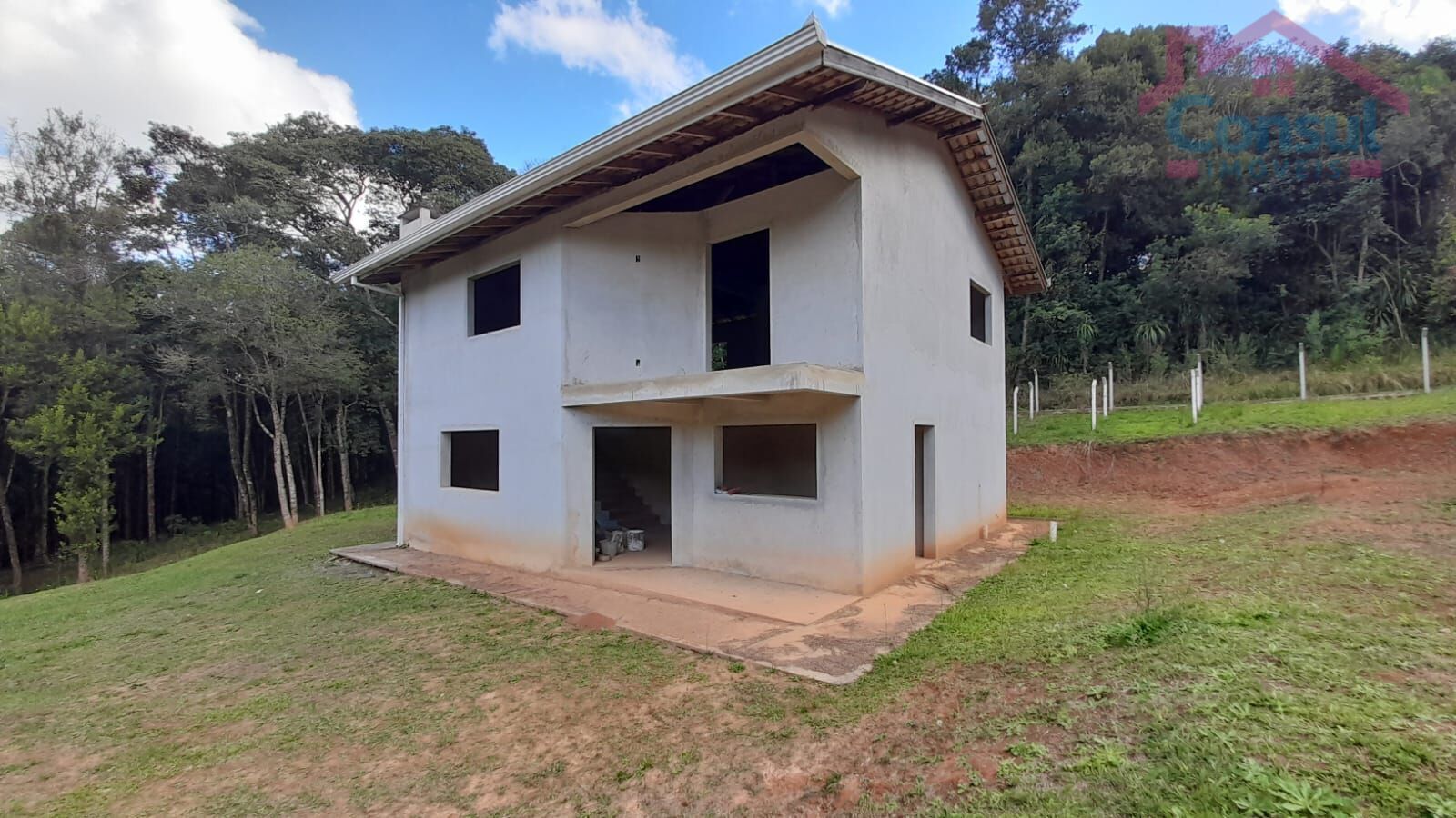 A casa foi construída, porém aguarda os acabamentos, contém 03 quartos, sala cozinha com lareira, na parte inferior, a parte superior, é um conceito aberto, sem divisões;