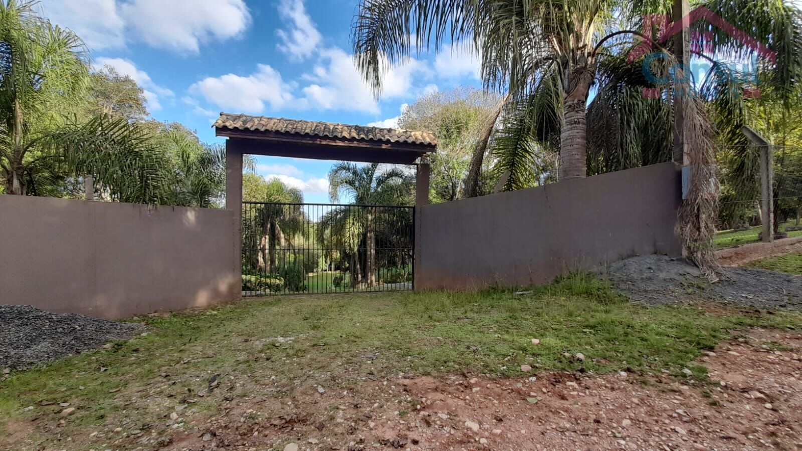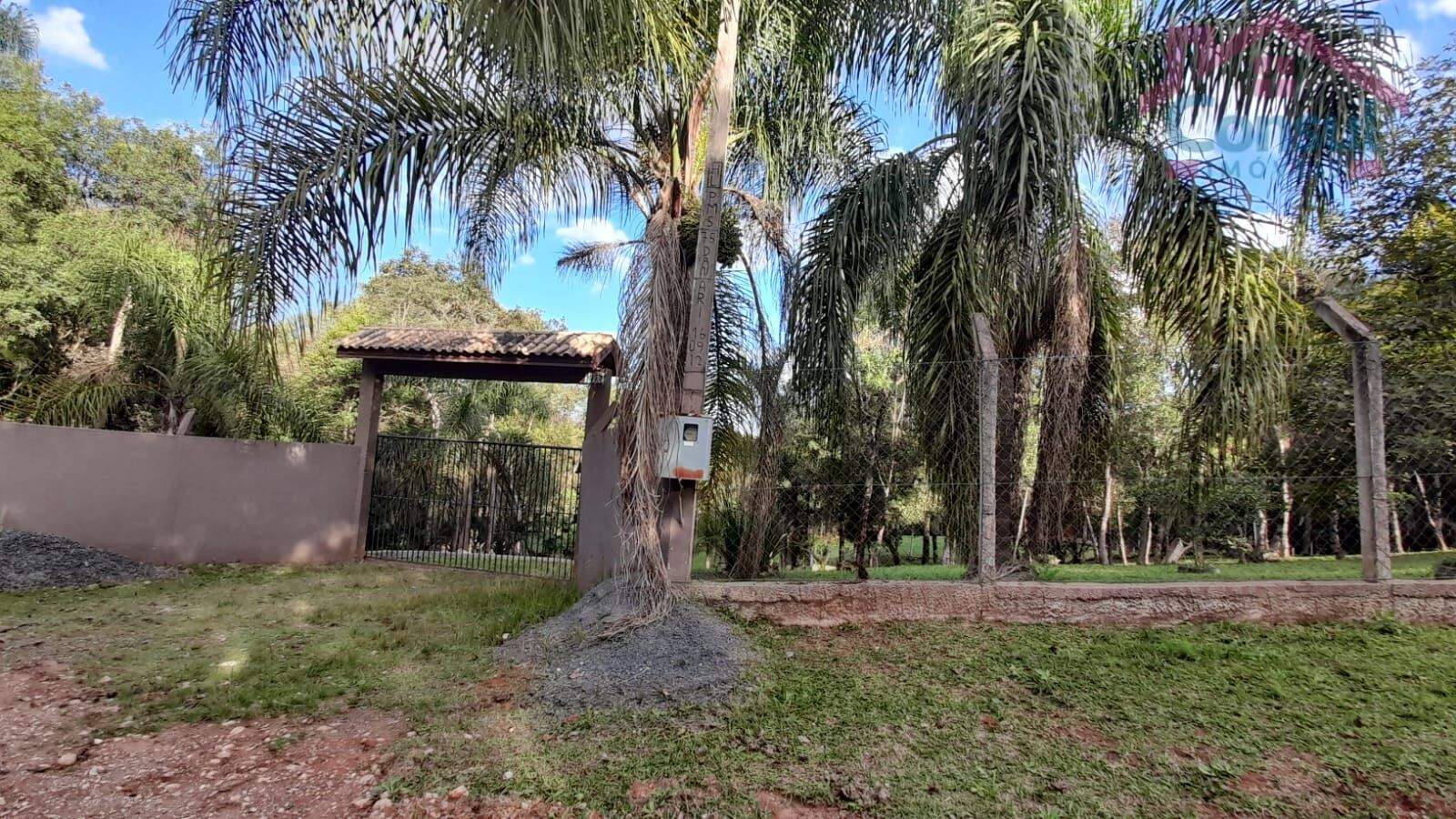 O terreno total é de 33.000m², contendo área de pomar, campo de futebol em formação, quadra de vôlei de areia em formação, playground e reserva legal, ao fundo passa o riacho dentro da área.