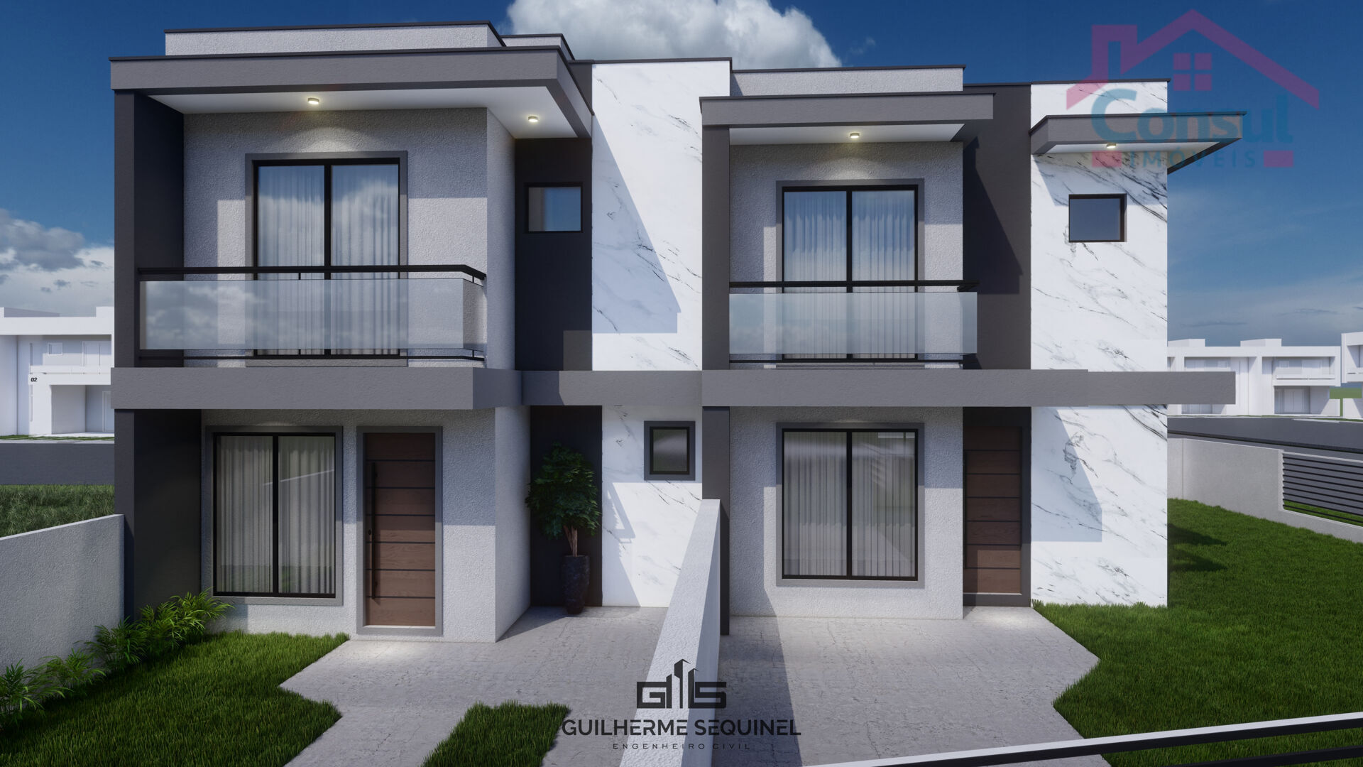 O sobrado contem 2 banheiros, 3 quartos sendo uma suite, contem sala e cozinha com sancas em gesso rebaixados, escada em granito, telhado em zinco (platibanda), pontos de agua quente na cozinha e banheiros e lavanderia, pontos para ar condicionado e uma arquitetura moderna, com piso porcelanato nas áreas frias e piso laminado nos quartos!